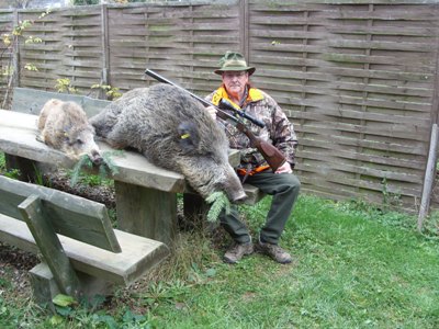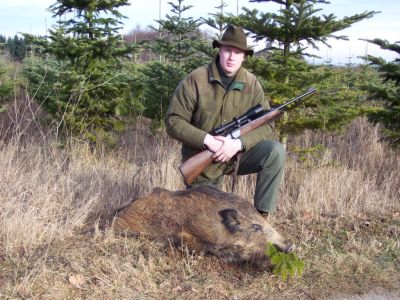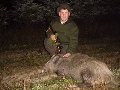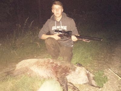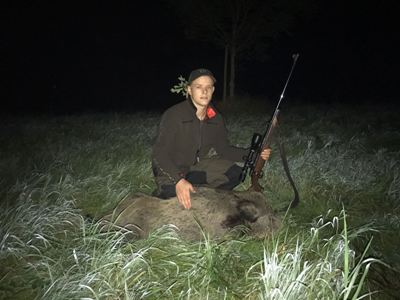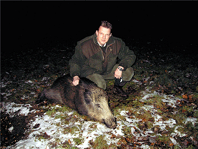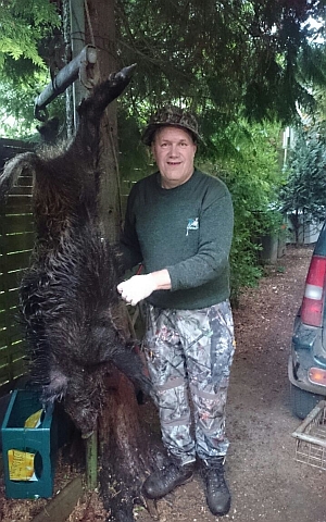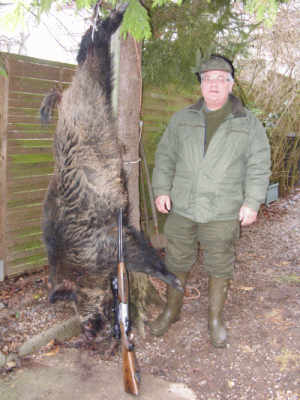 Jäger Kai Porten mit seinem erlegten Keiler |