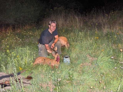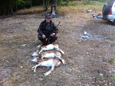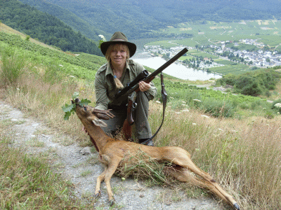 Jägerin Nicole Kremer (geb. Porten) mit ihrem erlegten Rehbock |
